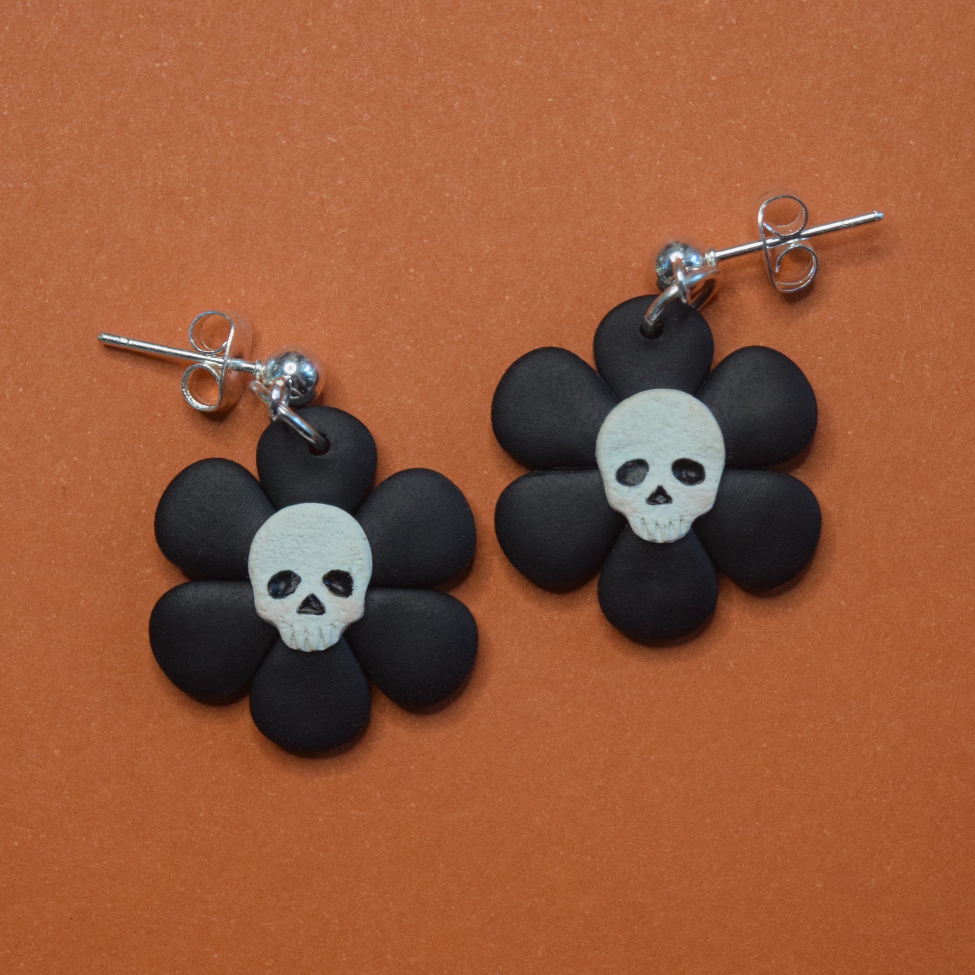 Handmade from polymer clay, these Death Daisies strike the perfect balance of cute and spooky. Their classic black and white design pairs effortlessly with any outfit.